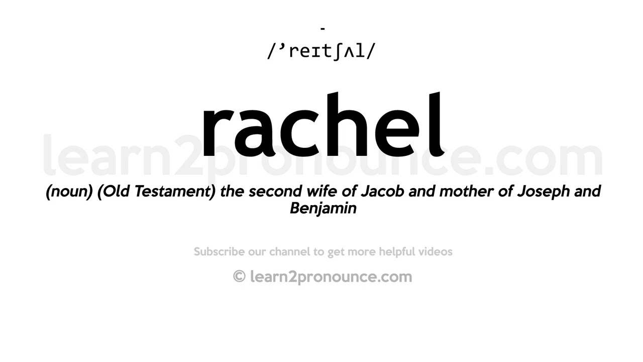 Web How to Pronounce Rachel - YouTube 000 056 How to Pronounce Rachel NamesOrg 274K subscribers Subscribe 288 Share 95K views 4 years ago This video shows you how to pronounce Rachel. הגייה על Rachel Banyas עם 1 הגיית אודיו ועוד Rachel Banyas. R AI - ch uh l Slow Helpful Send us corrections Pronunciation of Rachael Pronounced like Rachel Record Rachael Upload.